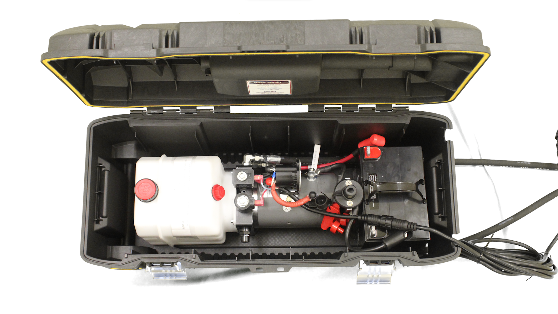 Hydraulic System: Equipped with a dual action, 12V 2300 PSI hydraulic pump featuring quick disconnect couplers. The system includes cylinders with power up/power down hydraulics for smooth and controlled lifting.